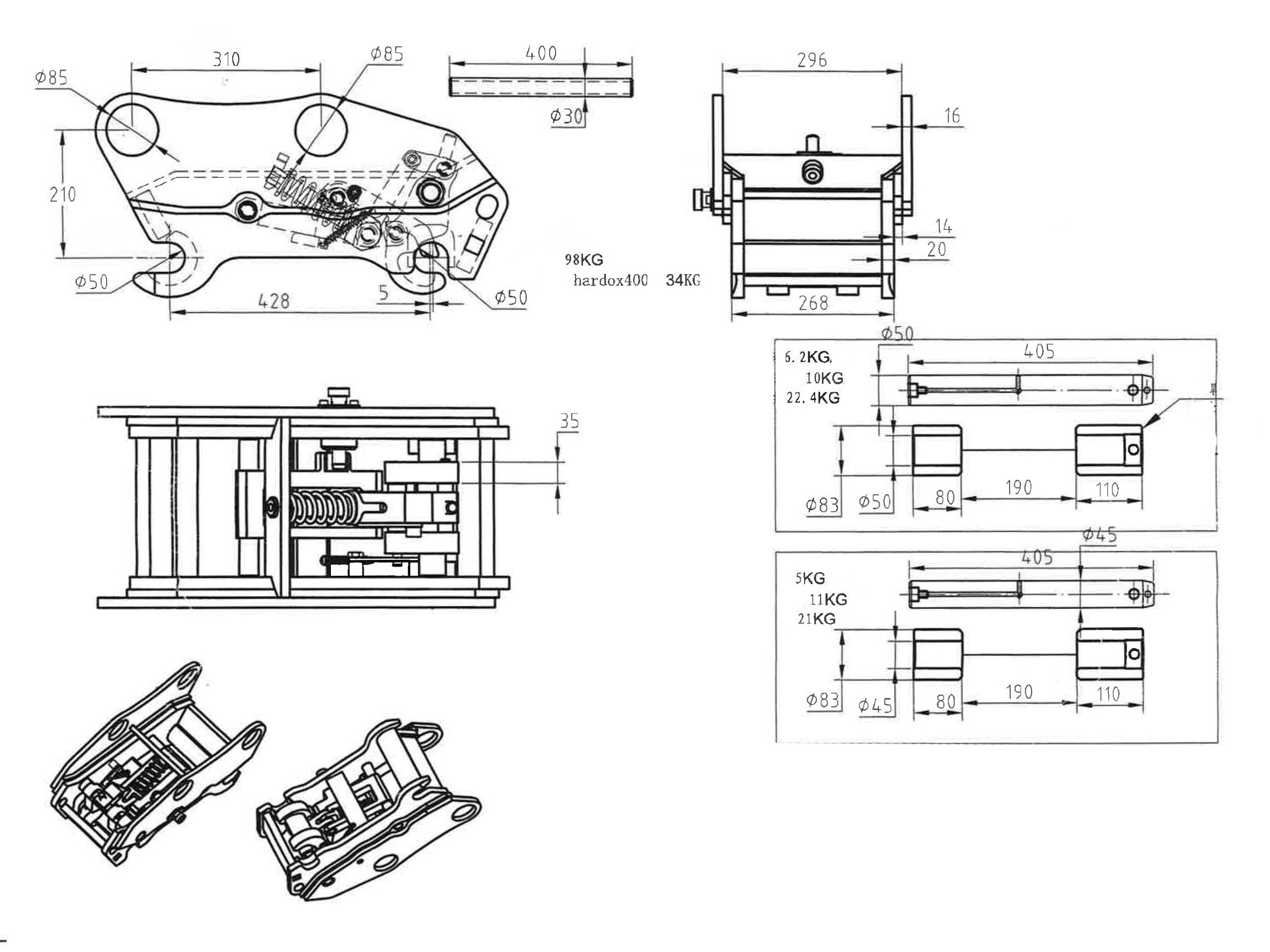 Hurtigkobling passer til 8 tonner. Manuell uten hydraulikk. Foringsdiameter etter ønske (maskin).